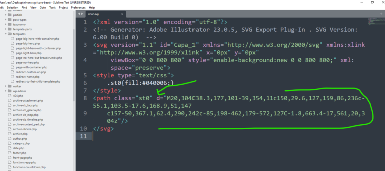 La capa del path le aplicamos un estilo transform scale, en la cual el valor va a ser horizontalmente 1/ ancho de la imagen en illustrator, lo que hubiera sido el ancho del viewbox. Lo mismo verticalmente.En mi caso en Illustrator fue 800×800, por eso la formula con calc empleada.